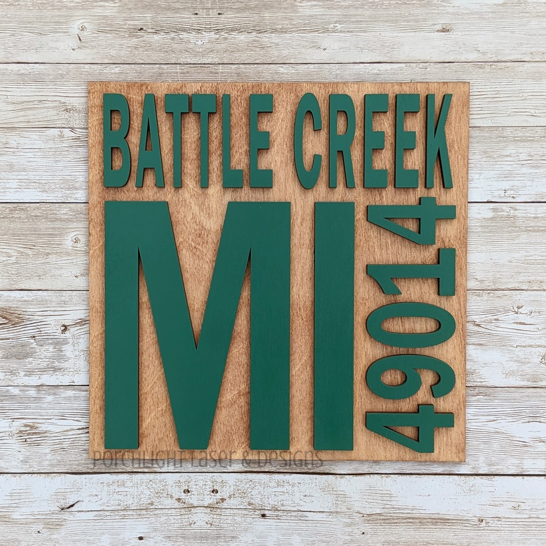 Show off your hometown pride with the City, State & Zip Code Sign! It also makes the perfect housewarming gift, closing gift, or wedding gift.